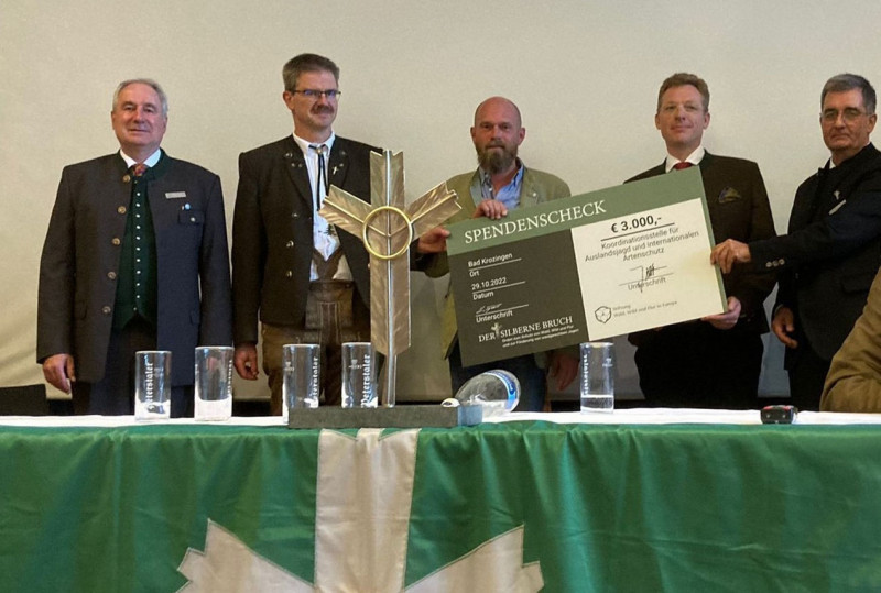 Der Orden «Der Silberne Bruch» verlieh an seinem diesjährigen Ordenskonvent in Bad Krozingen Deutschland Ende Oktober 2022 der Koordinationsstelle für Auslandjagd und internationalen Artenschutz, einer gemeinsamen Initiative des Deutschen Jagdverbandes DJV und dem Internationalen Rat zur …